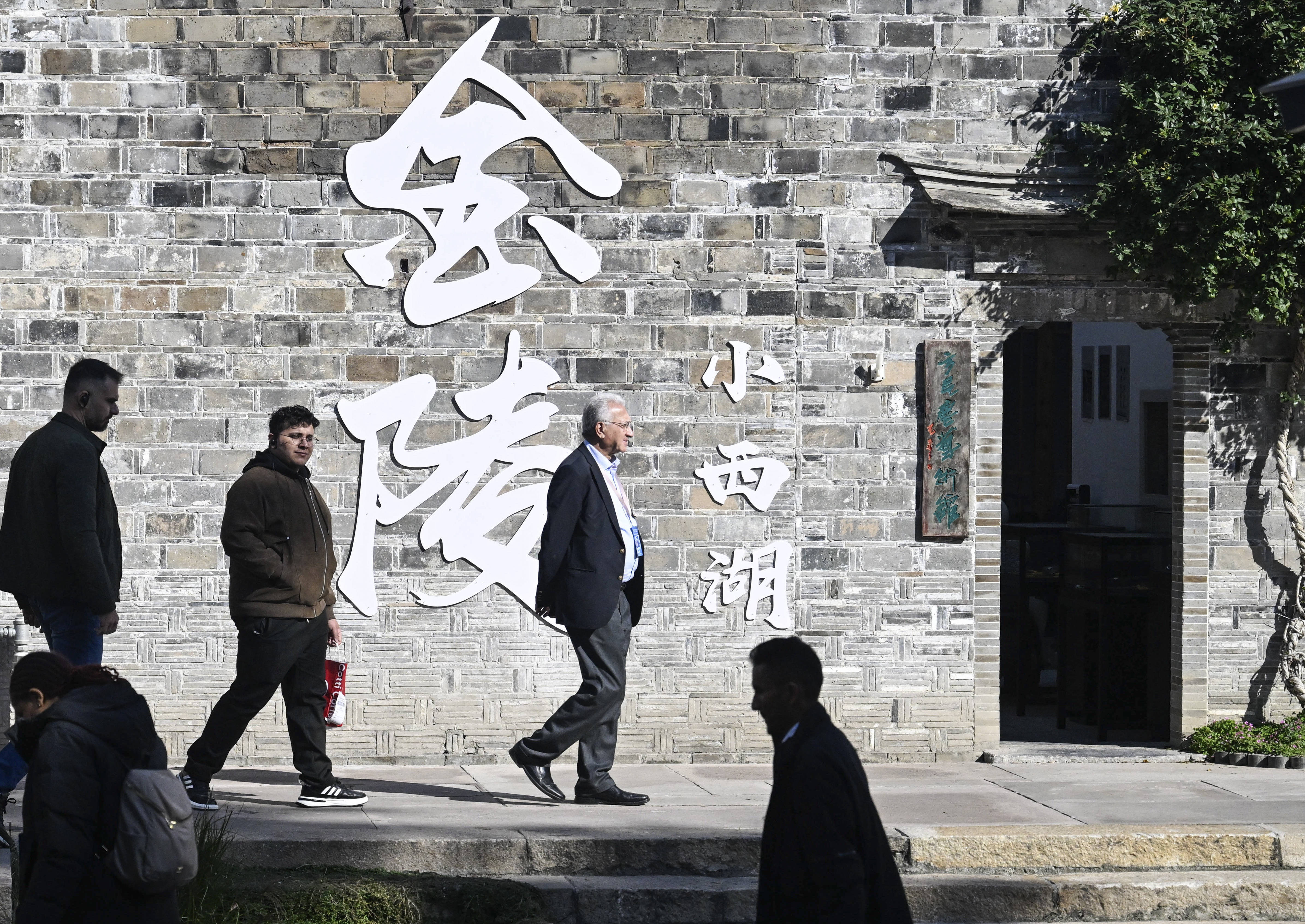 11月20日,嘉宾在南京小西湖街区参观。新华社记者 季春鹏 摄“城市若脱离文化滋养,便会失去其自身特质。”意大利科莫市市长亚历山德罗·拉皮内塞表示,南京不断加强文化建设、用心保护文化遗产,这与科莫的城市治理理念不谋而合,“我们面临着相同的课题,也在用相似的方式求解——尽最大努力保护好遗产与古城墙,并让人们在这里安居乐业”。
