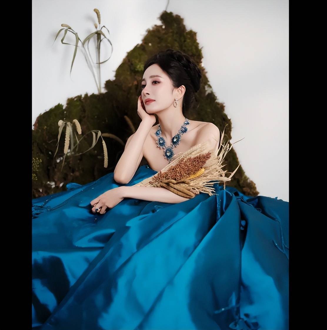 杨幂五官精致,气质优雅,眼神温柔,姿态灵动,盘发造型精致俏丽,锁骨精致,手捧麦穗,温婉动人,美背吸睛,气场强大。在《斛珠夫人》,《三生三世里桃花》,《扶摇》中出色表现,赢得了网友的关注。